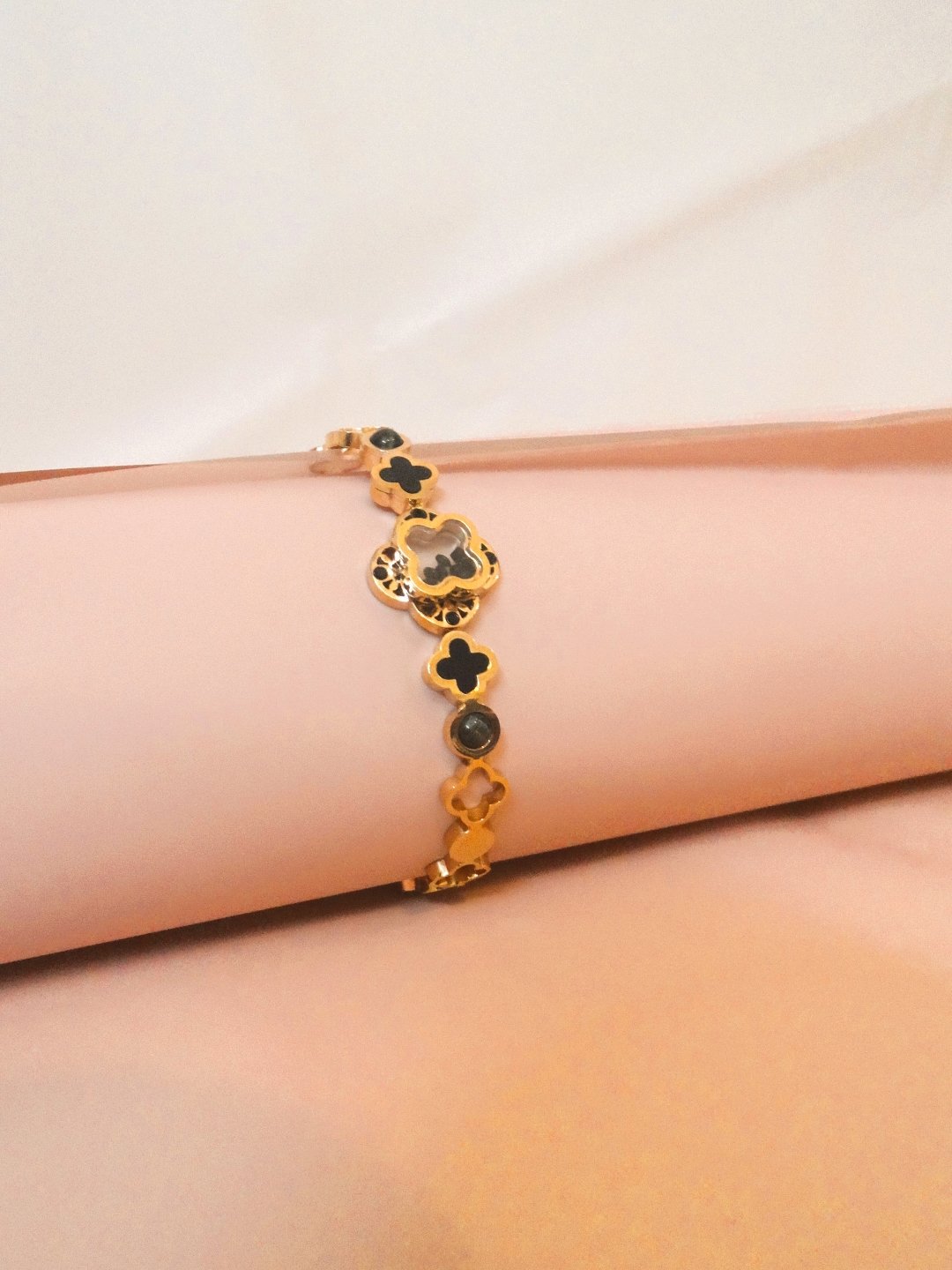 Clover design black stud bracelet
