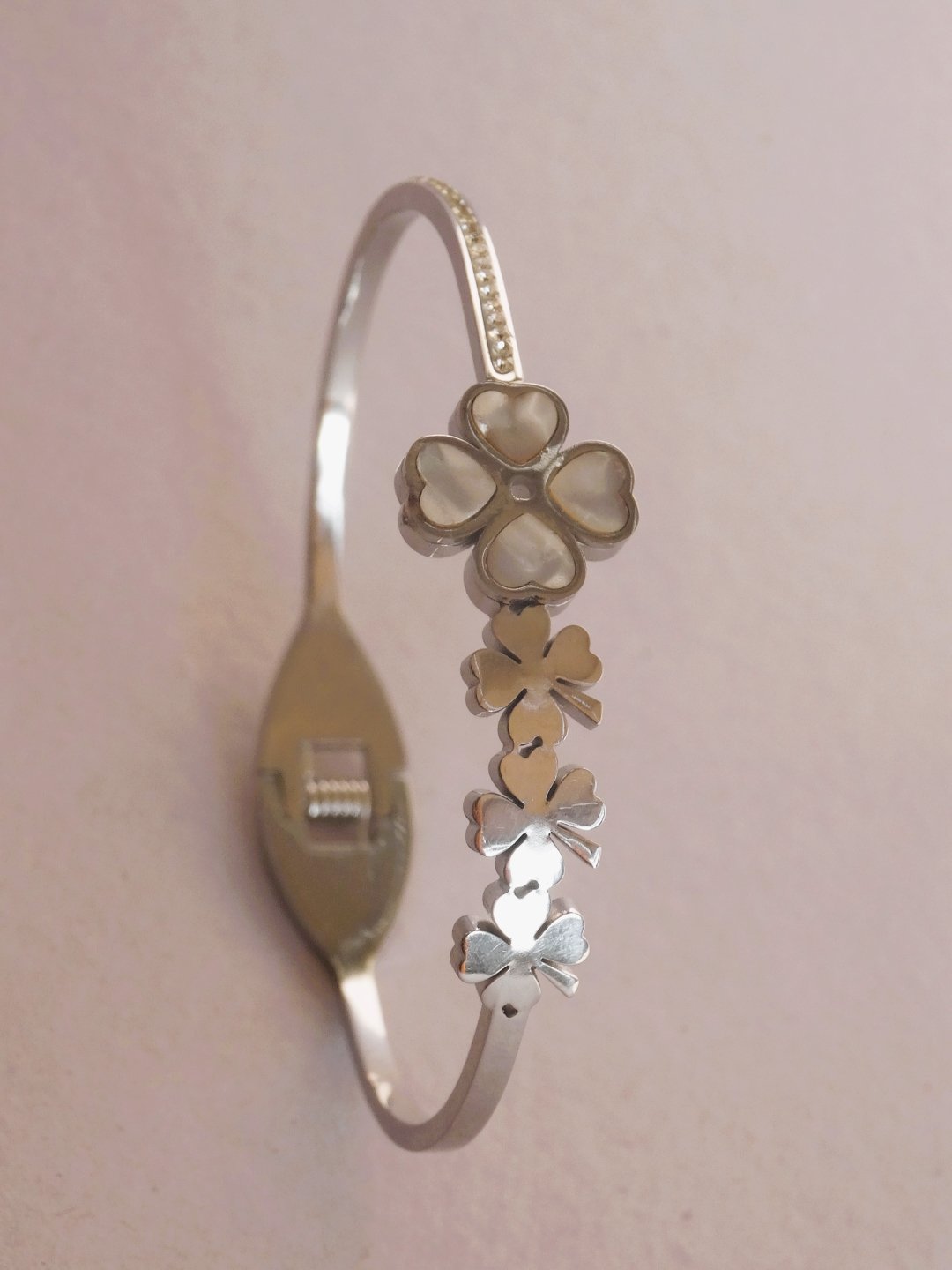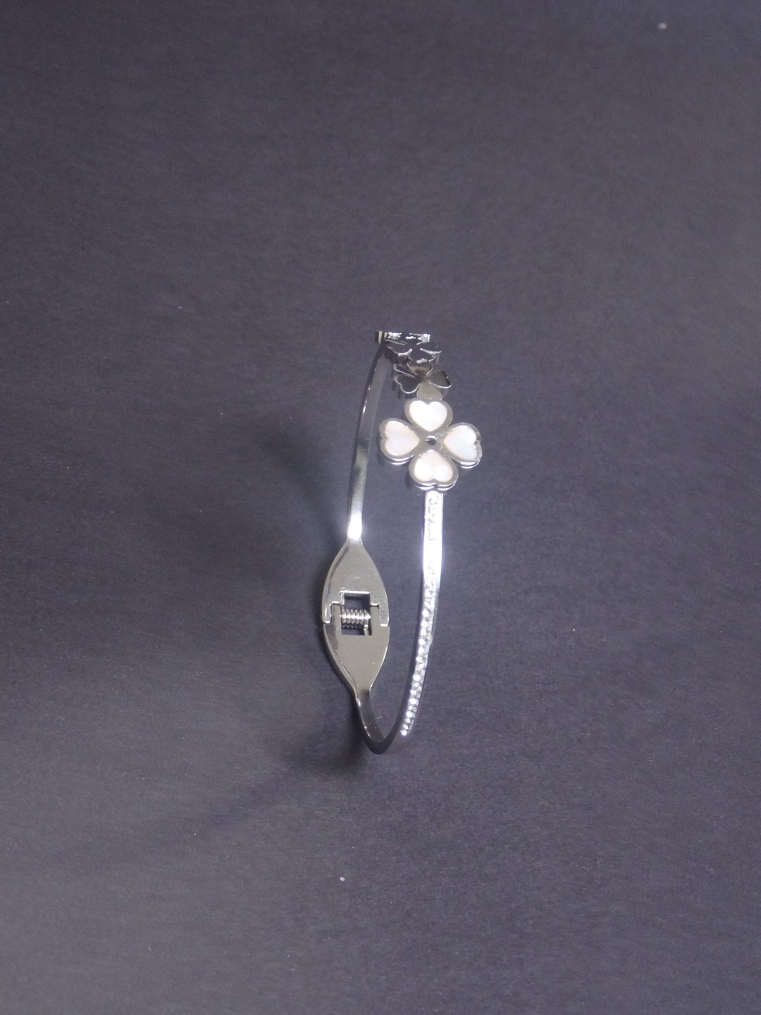 Silver floral crystal bracelet (Silver ascending floral crystal bracelet with spring open)